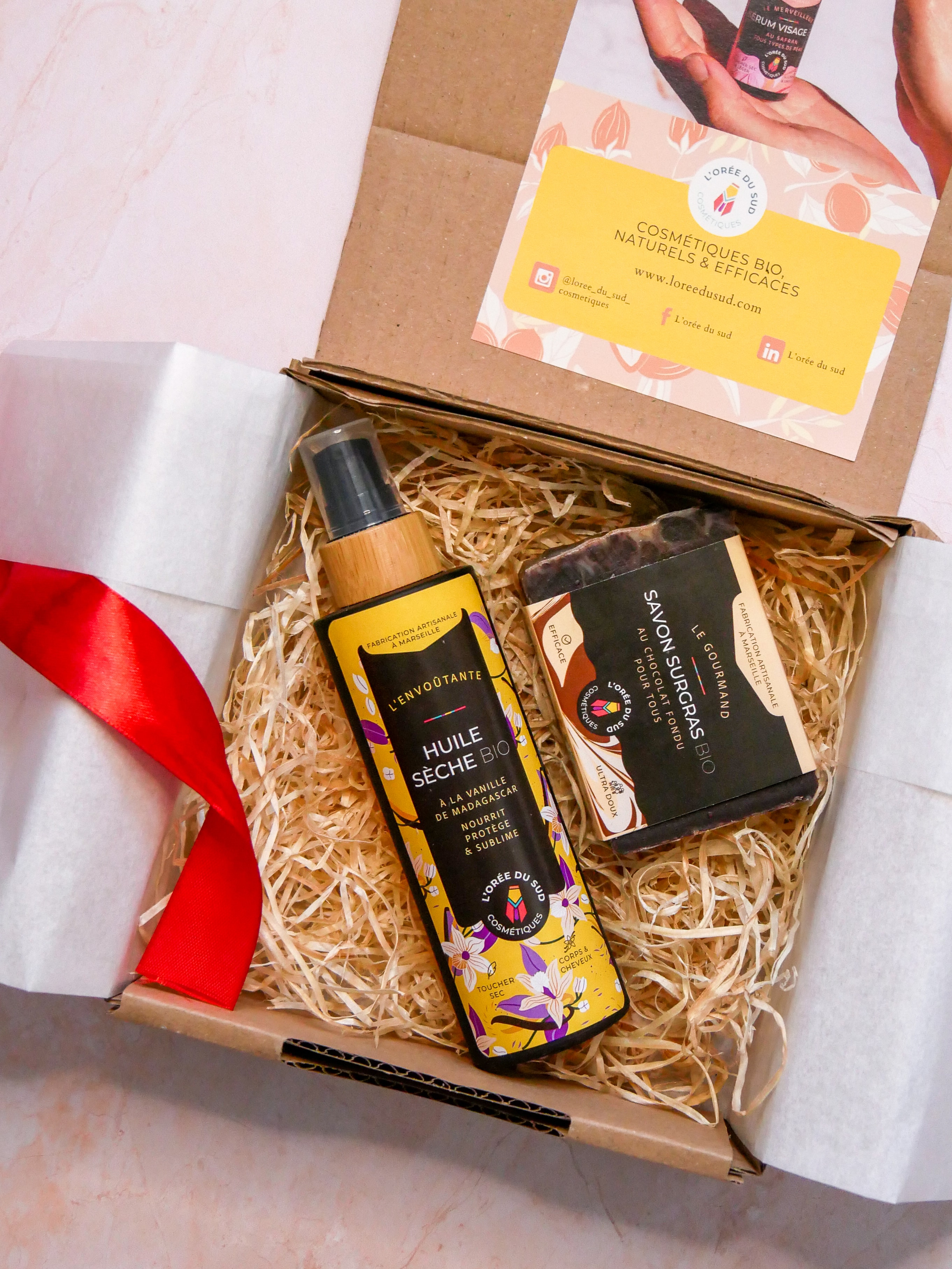 Composé de notre huile sèche Bio à la vanille et notre savon surgras bio au chocolat fondu, vivez une expérience unique pour les fêtes de Noël. Nos soins sont formulés partir de 100 % d’ingrédients bio, naturels et majoritairement français.