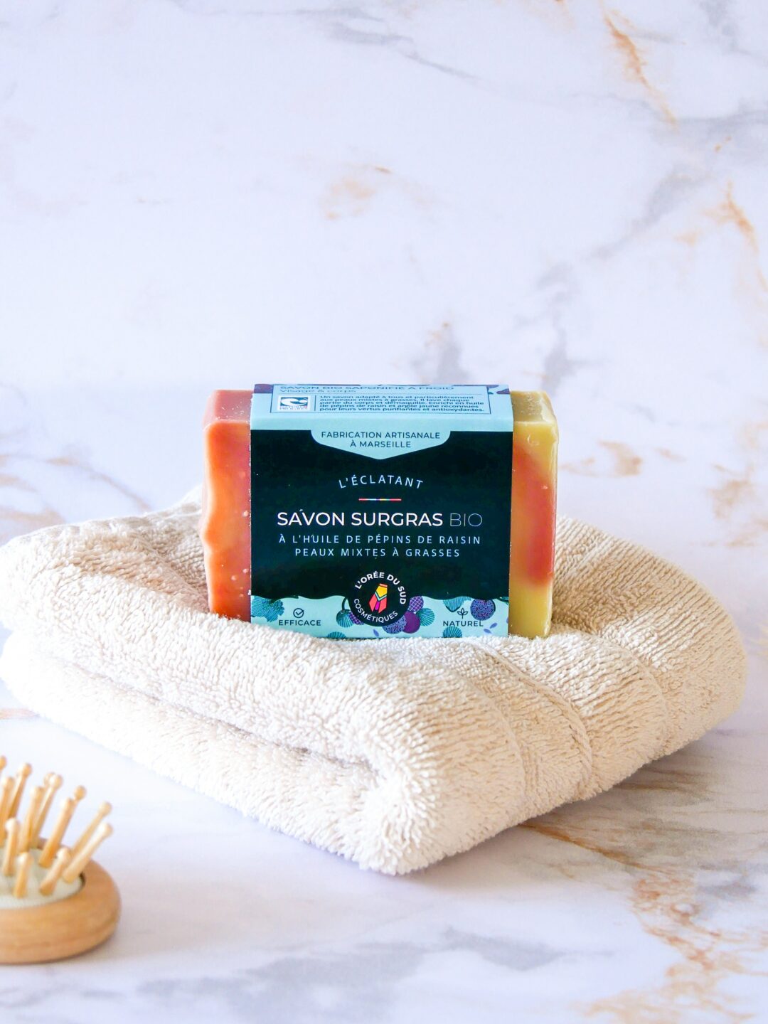 - Un savon bio doux et surgras qui nettoie la peau en douceur, sans les dessécher. Sa mousse généreuse permet un lavage agréable et un démaquillage facile.