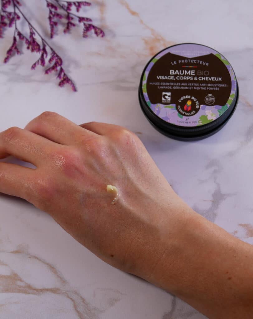 Chez L’orée du sud, nous avons à cœur de proposer des produits qui respectent à la fois votre peau et l’environnement. Le baume Le Protecteur est formulé avec des ingrédients 100 % bio qui proviennent de producteurs français, garantissant une qualité irréprochable.